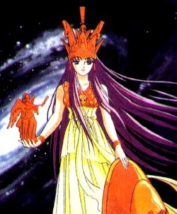 Présentation : Saori Kido est la réincarnation actuelle de la Déesse Athéna, qui revient sur Terre tous les 200 à 300 ans pour protéger les humains contre les Dieux qui veulent leur perte. Après avoir combattu le Grand Pope, incarnation maléfique d'Arès ; Poséidon, l'Empereur des Océans et enfin Hadès, le Seigneur des Enfers ; elle s'est enfin révélée en tant que Déesse et à abandonné son ancienne personnalité. Elle parvient à s'enfuir de l'Elysée avant que celui-ci ne l'engloutisse, en ramenant avec elle ses précieux Saints sur Terre. Mais elle ne peut plus rien faire pour sauver Seiya et décide de l'accompagner dans son dernier voyage vers un monde meilleur et le guide jusqu'aux portes de l'Olympe. |