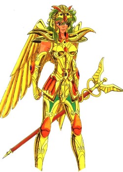 Présentation : Shina est le Saint d'Ophiuchus. Elle fut entraînée au Sanctuaire par Démétrios, qui était comme un père pour elle. Puis, une fois qu'elle eu acquit son armure, il disparut mystérieusement. Déclaré traître au Sanctuaire, Shina du se résoudre à l'oublier et à servir de son mieux le Pope, afin de racheter la faute de son maître. C'est pourquoi elle était si dévouée et si dure au début de Saint Seiya. C'était pour oublier que son maître avait trahi le Sanctuaire. Quand elle le revoit, bien des année plus tard, elle met beaucoup de temps avant de lui pardonner et quand il lui explique enfin son geste, elle comprend et ne lui en veut plus. Shina défend le Temple du Sagittaire contre Loge! Mais au cours du combat, elle découvre un passage secret qui la mène au cœur de la montagne sacrée, jusqu'au mystérieux 13ème Temple de Zodiaque. Là, elle découvre un sceptre mystérieux : le Caducée. Son maître Démétrios apparaît alors pour lui apprendre qu'elle porte une armure spéciale, qui est en faite une Gold Cloth, dissimulée en Silver Cloth, et qu'elle peut la réveiller en s'éveillant au 7ème sens. Le Caducée lui sert à rendre la vie à une personne, à condition qu'elle soit morte au combat par inadvertance. Tel est le pouvoir du Caducée d'Asclépios ! Si elle parvient à éveiller sa Gold Cloth, Shina pourra également rassembler autour d'elle les 12 Gold Saints pour l'ultime bataille. |