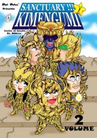 Volume 1 : Les Loufoques du Sanctuaire vont rendre visite au Pope en Grèce. Ce traître fait croire à tout le monde qu'il est gentil alors qu'il est méchant. Il a voulu tuer la réincarnation de la Déesse Athéna : la princesse Saloperie Kido : c'est quand même un salopard! Ainsi commence une lutte sans merci de 12 heures contre la faim, la soif, la fatigue, l'envie de faire pipi et surtout les Douze Chevaliers d'Or des Signes du Zodiaque qui protègent le Sanctuaire. Volume 2 : Nos amis les Chevaliers de Bronze sont en train de latter la garde du Grand Pope. Ils ont reussi à passer les quatre premiers Chevaliers en limitant les pots cassés. C'est qu'il faut être en forme pour aller voir le Grand Pope. Ca nous change des 12 heures d'attente à rien faire pour voir Mickey dans le Space Mountain ! C'est donc dans la bonne humeur que continue la folle bataille des 12 palais contre les Chevaliers d'Or. Volume 3 : C'était pourtant bien parti ! Les Chevaliers de Bronze protégaient Athéna et nos héros n'avaient qu'à réussir leur exam de carrosserie dorée. Hyoga est réssucité mais pour combien de temps ? Il semble bien faire partie de la liste noire des Chevaliers d'Or sur laquelle Shiryu serait le premier inscrit... Pas cool ! C'est donc dans l'angoisse que va se terminer le folle bataille des 12 Palais contre les Chevaliers d'Or. Sanctuary !!! Kimengumi est une parodie en 3 volumes reprenant la bataille du Sanctuaire mais en remplacent tout les Chevaliers par des personnages de la série High School Kimengumi (Un collège Fou Fou Fou). Bien sur l'ambiance est beaucoup plus délire que sérieuse mais ça ne pouvait pas être autrement quand on connaît la bande des Joyeux Loufoque. Dans les roles principaux : Seiya de Pégase : Rei de Ped Gaz Shun d'Andromède : Ted d'Androlaide Hyoga du Cygne : Don de Sinus Ikki du Phénix : Jano du Film X Shiryu du Dragon : Jim du Lardon Athéna Saori Kido: Dan Saloperie Kido Titre : Sanctuary !!! Kimengumi Auteur : Christophe Boullé Format : A5 Nombre de volume : 3 Nombre de Page : Volumes 1 et 2 : 100 / Volume 3 : 110 Style : Parodie Type : Doujinshi Prix : Volumes 1 et 2 : 2,74 € / Volume 3 : 3,05 € E-mail : bigbull@libertysurf.fr Site Web : http://bigbull.free.fr/ Pour vous procurer ces Doujinshi, il faut les commander directement auprès de Big Bull, toutes les infos sur ses coordonnées sont disponibles sur son site ainsi que les frais d'envois pour la Belgique et pour la France. |